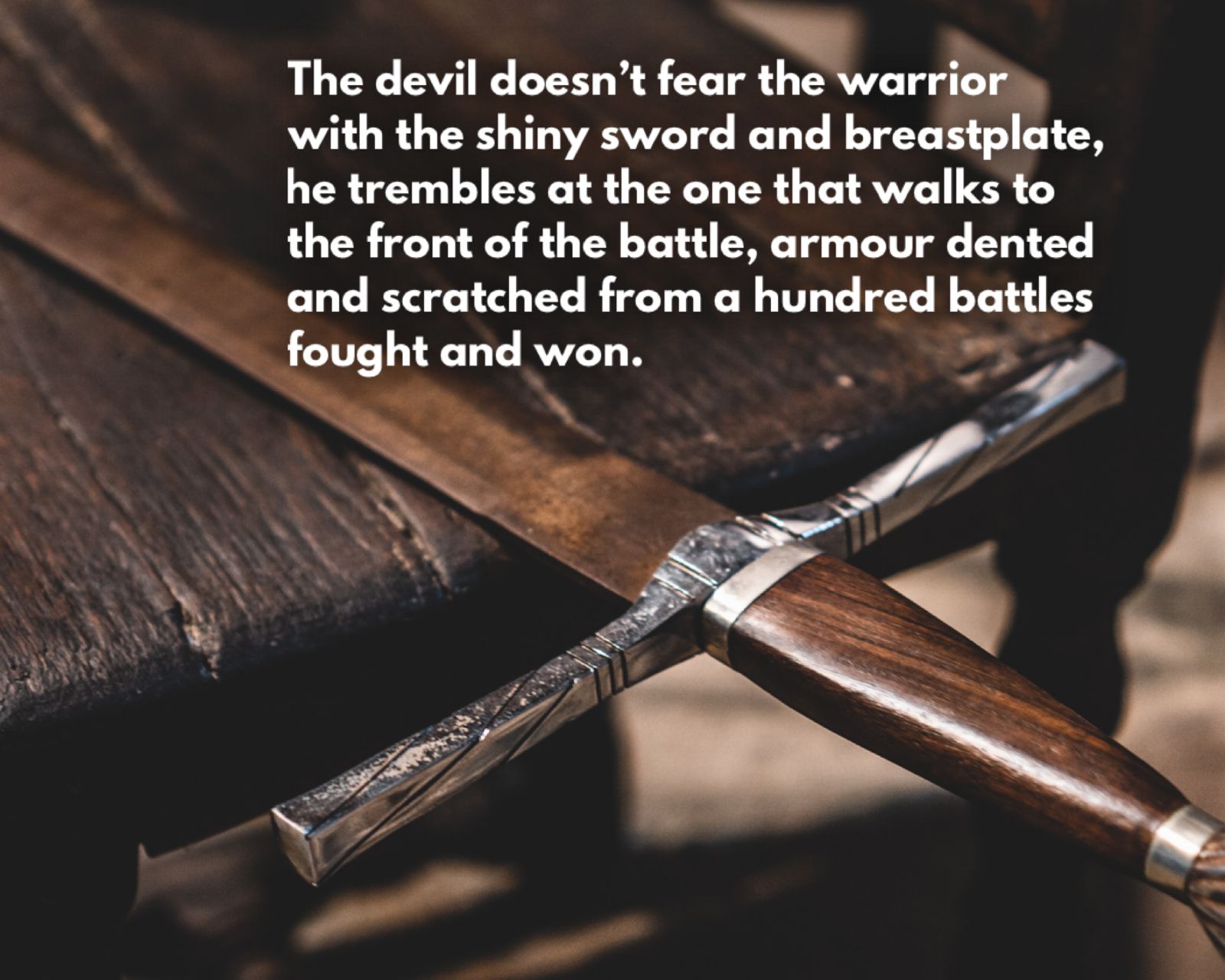 The devil doesn’t fear the warrior with the shiny sword and breastplate, he trembles at the one that walks to the front of the battle, armour dented and scratched from a hundred battles fought and won.