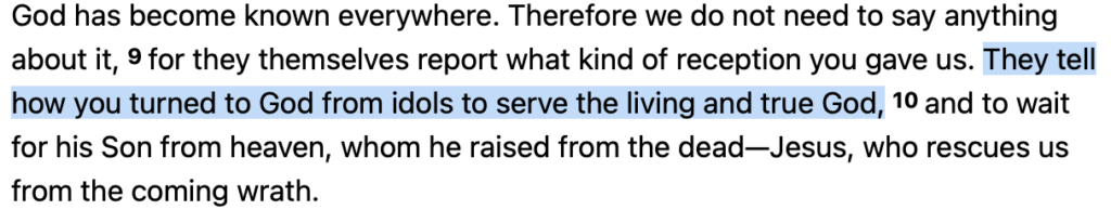 “They tell how you turned to God from idols to serve the living and true God…” (v9b)