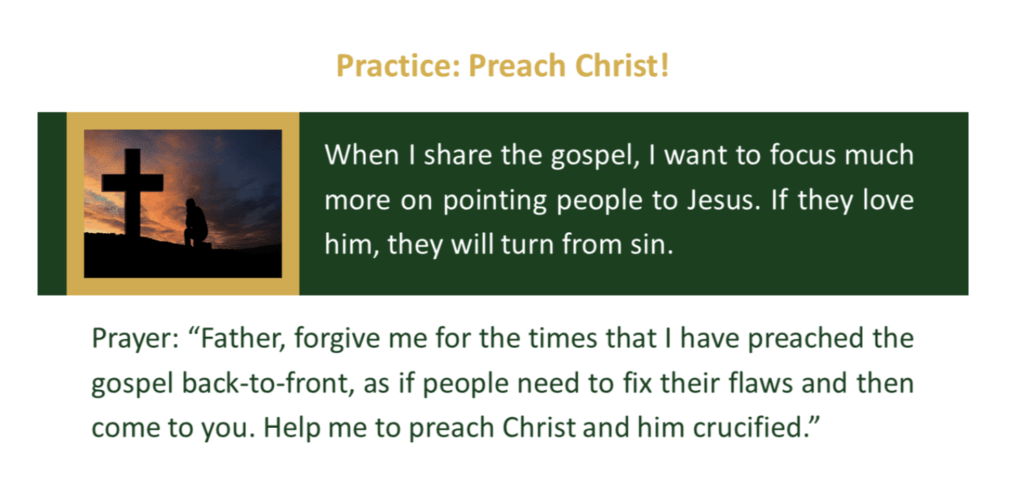 My order would be back-to-front, since the gospel is primarily the good news about Jesus and what he has done. Sinners must first meet Jesus; only after meeting him can they turn away from their sins.”
